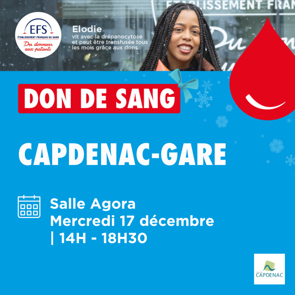 La prochaine collectes de sang à Capdenac-Gare se déroula à la salle Agora de 14h à 18h30 le :